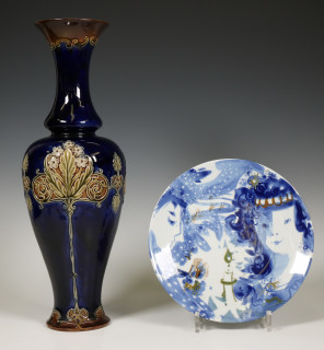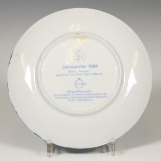 met in relief versieringen van bloemen en planten. Gemerkt. Hierbij DDR, Kahla, porseleinen bord, Motiv 'Winter', 1984.