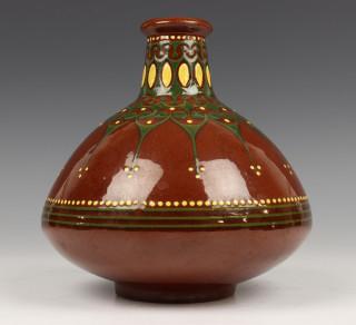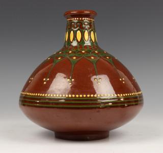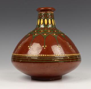 v.h. Amstelhoek, ontwerp C.J. van der Hoef, rood sieraardewerk vaas, ca. 1906,
