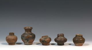 Thailand, Sawankhalok en Khmer, diverse keramiek vaasjes en deksel, deels 16 en 17e eeuw