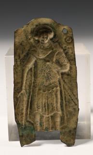 Byzanthium - Early Christian, bronze plaquette depicting a warrior in tuni with spear and possible arrow
