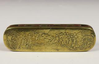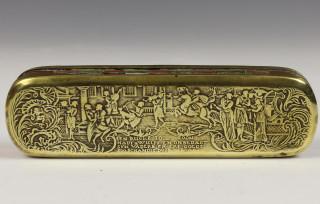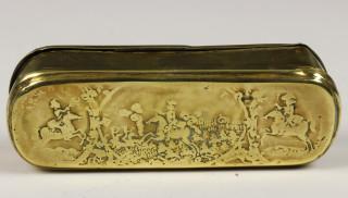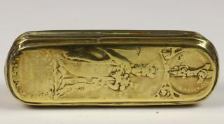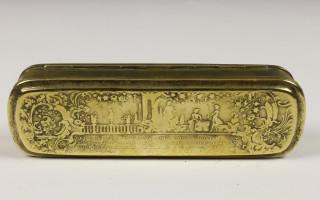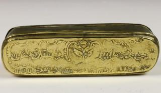 Vier verschillende 'Iserlohner' geelkoperen tabaksdozen, 18e eeuw,