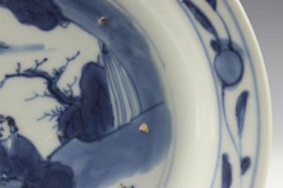 met decor van twee wijzen in landschap (randschilfers en glazuur imperfecties)