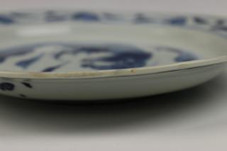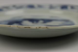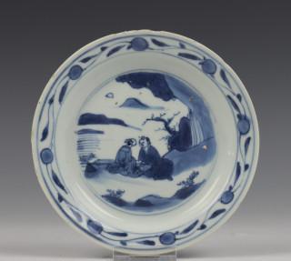 China, blauw-wit porseleinen schoteltje, Ming, Tianqi