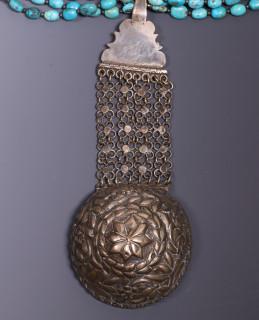 Syria, silver alloy necklace with turquoise beads and cap shaped pendant