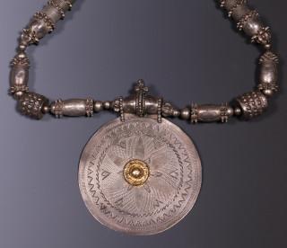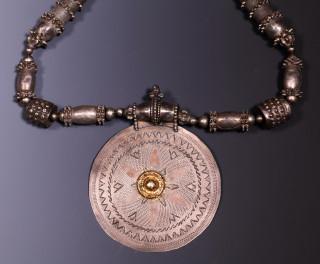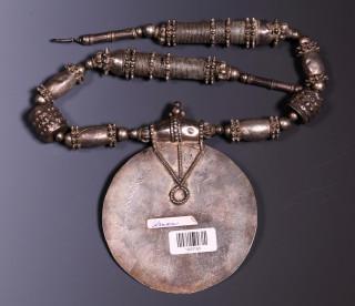 Jemen, silver alloy necklace with big beads and disk-shaped pendant