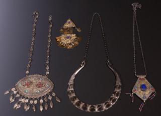 Afghanistan, necklace, two amulets on a chain and a gilded amulet