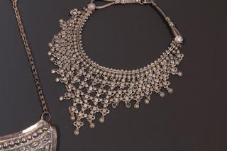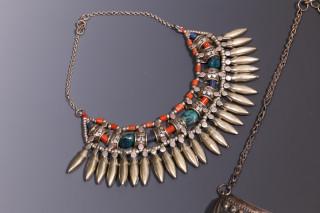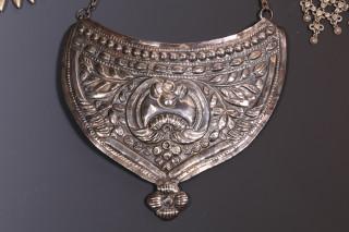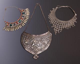 Armenia, ex voto, tooled and chiseled, and India, necklace with coral and turquoise and one silver alloy laced necklace
