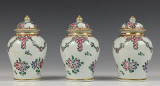 Frankrijk, Samson, drie porseleinen dekselvazen met Chine de Commande decor, 19e eeuw