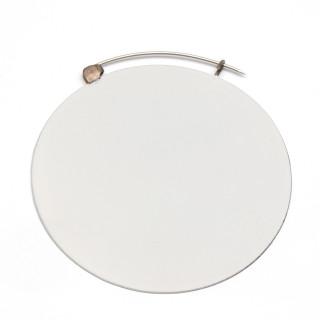 bestaande uit een ronde schijf van 5 cm. in diameter, aan beide beschilderd met witte autolak