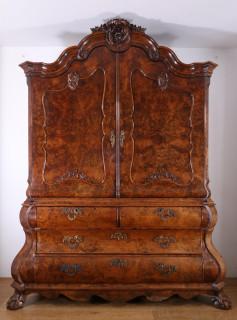 Hollandse noten- en notenwortelhouten kabinet, Louis XV, 18e eeuw.