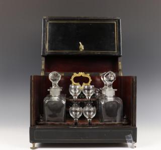 Zwart laque likeurkelder, eind 19e eeuw