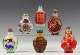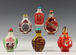 China, collectie van zes glazen snuifflesjes, 19e-20e eeuw,