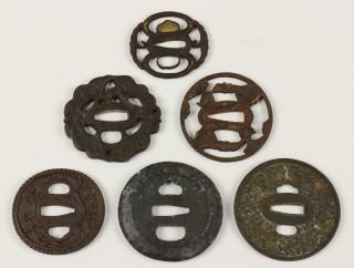 Japan, zes bronzen tsuba's, 19e-20e eeuw,