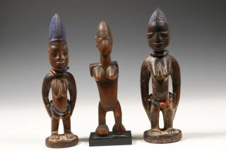 Nigeria, Yoruba, two female ibeji and Fon, one female ibeji, twin figures.