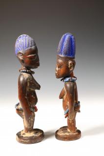 Yorubas with blue headdress, beaded jewelry and pierced eyes. Fon; one foot and both arms missing, pierced earlobes and rubbed off face. Provenance: Christie's Amsterdam, dec. 2001, lot no. 311