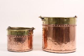 geklonken verbindingen en gedateerd 1852. Hierbij een kleine exemplaar zgn. 'geitenmelkemmertje', voorzien van initialen en gedateerd 1869.
