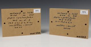 tweemaal papier en poederverf op mdf, niet ingelijst, verso gesign., 2000, 21 x 15 cm.