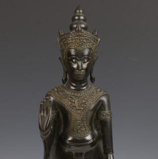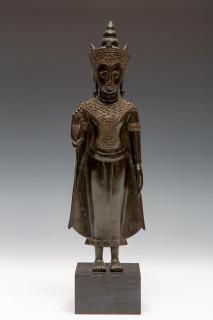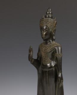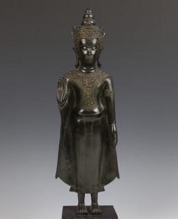 Thailand, donker gepatineerd bronzen staande Boeddha in Ayutthaya stijl, 18e-19e eeuw,