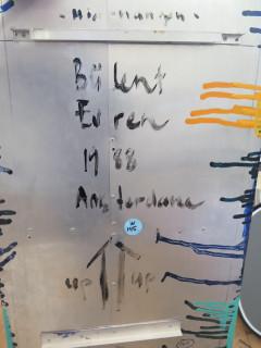 olieverf op aluminium, verso gesign., 1988, 50 x 95 cm.