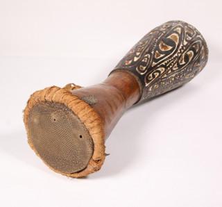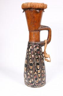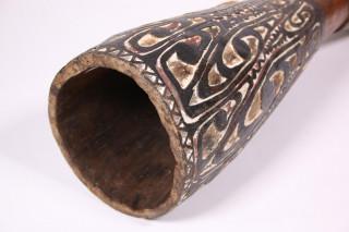 with fine carved characteristic Sentani Lake flowing motives, highlighted with kaolin. With reptile hide vellum
