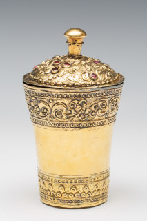 Bali, Klung Klung, gold and metal ceremonial priest lidded beaker, Sangku, 19th century