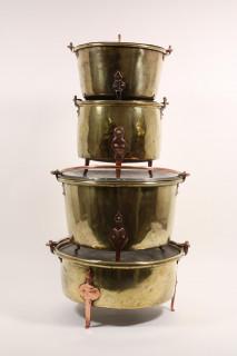 Serie van vier geel koperen kook potten, 19e eeuw,