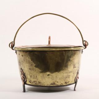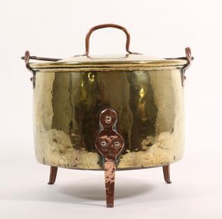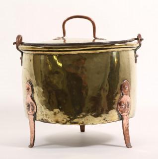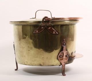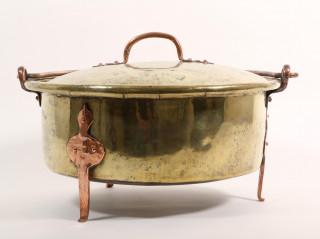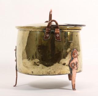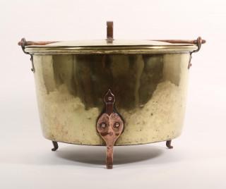 verschillend in grote, allen voorzien van rood koperen geklonken pootjes, hengsels en handvaten.