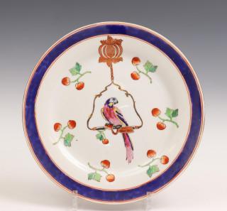 Serie van twaalf gekleurd porseleinen borden in 18e eeuws Chinese stijd, 20e eeuw,