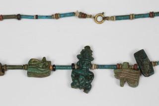 Egypte, faiece necklace with thirteen amulets, Late Periode