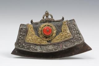 Tibet or Mongolia, chuckmuck, ca. 1900. With decoration of a stork and the handle with decor of two mytholigical animal heads
