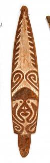 with carved face and curve lineair decoration. Pigments in red and white. Collection Leo Slangen.