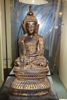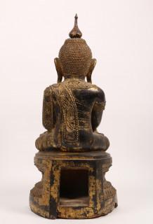 Birma, houten en lakwerk gezeten Boeddha, Shan Stijl, 19e eeuw