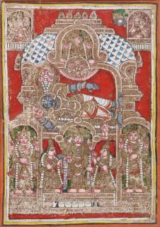 Zuid India, Vishnu Anantashayin, slapend op de slang Ananta, terwijl Brahma uit zijn navel wordt geboren, 19e eeuw