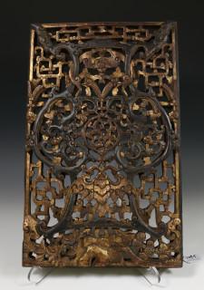 China, opengewerkt gestoken houten sierpaneel, ca. 1900