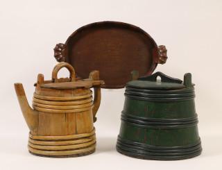 hierbij een gekuipte schenkkan en een gekuipt dienblad.