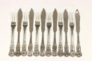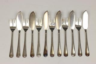 gecoreerd met palmet versieringen, mt. Ohlenschlager & Riemann 800st., aanvulling van in Engels pleet gelijkende dinergerei. Hierbij Engels pleet zes viscouverts.