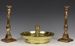 hierbij een koperen blaker en een paar koperen kandelaren.