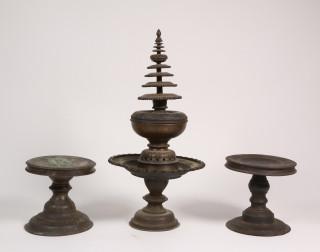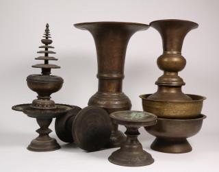 India, een collectie van negen koperlegering vazen, schalen en offerschalen