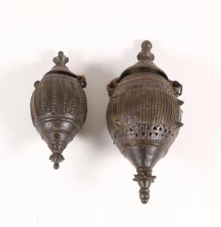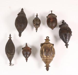 India, collectie van negen opengewerkte metalen potpourri houders