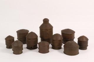 Ghana, Ashanti, ten forowa's, a collection brass alloy, lidded containers for gold dust or nuggets