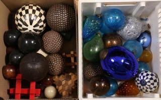 Collectie ballen, kerstballen en houten kubus figuurtjes