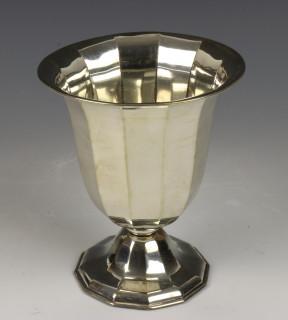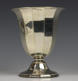 gefacetteerd kelkvormig model op veelkantige opstaande voet, mt. Fa. J.M.van Kempen Voorschoten 1925, 2e gehalte