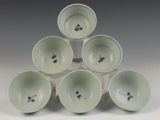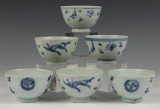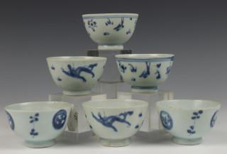 China, serie van zes blauw-wit porseleinen kommen, 17e/18e eeuw,