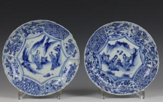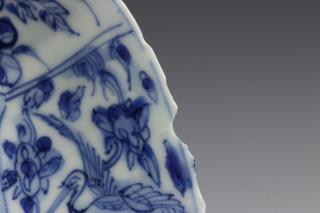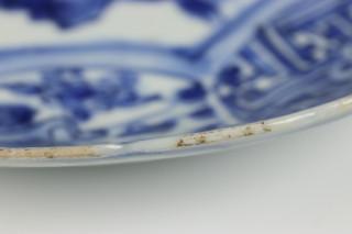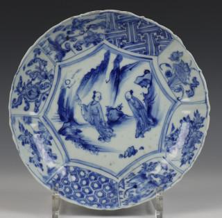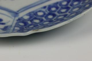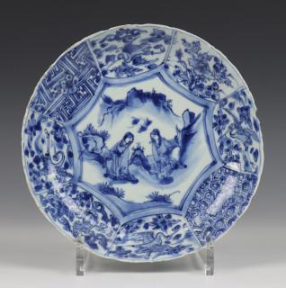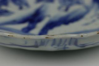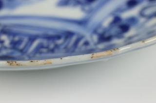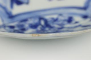 met decor van wijze in bergen, de rand met vakwerk(één met schilfertje en haarscheur)