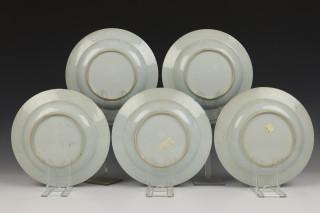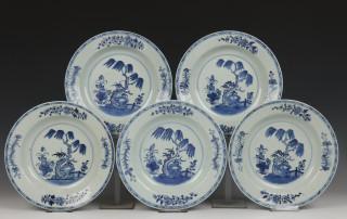 China, serie van vijf blauw-wit porseleinen borden, Qianlong,