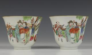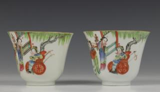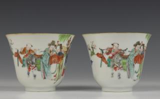 China, paar famille rose koppen, 18e eeuw,