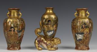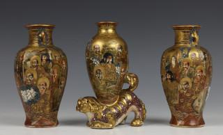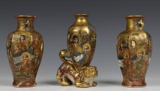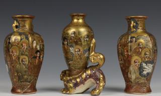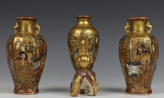 Japan, set van drie Satsuma vazen, Meiji periode,