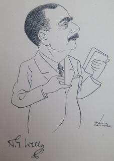 Portret van H.G. Wells. Met handtekening door H.G. Wells.