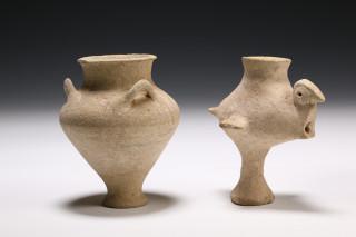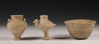 West Asia, earthenware aqua manile in the shape of a bird, end of 2nd Mill. BC and Mycenae, small pot with three handles, ca. 11th-10th century BC.