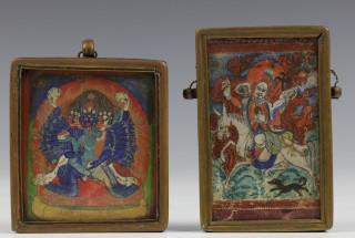 Mongolië, twee ga'u, amuletdoosjes; één van Vaajrabhairava en één van Phalden Lamo, 19e eeuw